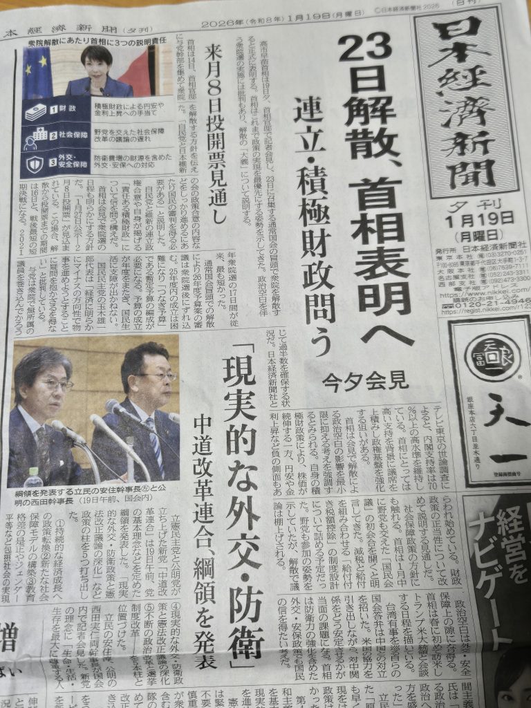 具体的にはアメリカのトランプ大統領によるベネズエラの大統領を拘束するという突然の軍事作戦とこれに続くグリーンランド領有発言があげられます。また日本国内では高市早苗内閣の電撃解散表明とこれに伴う立憲民主・公明両党による新党「中道改革連合」の結成、そして中部電力浜岡原発(静岡県御前崎市)の再稼働審査を巡るデータ不正。燃料制御棒のトラブル発生による東電柏崎刈羽原発6号機(新潟県)の再稼働延期。ほかにも福井県の杉本達治前知事のセクハラ文書による辞職など信じられない不祥事、さらには茨城県水戸市で起きたネイリスト女性殺人など日常茶飯事ともいえる凶悪事件の続発、相次ぐ山林火災など。昨年の熊出没騒ぎに続き、この世の中、ことしも新年早々から相も変わらず、目まぐるしく、そこには目を覆いたくなるような事件、事故が渦巻いているのです。一体、この世の中はどうなってしまうのでしょう。